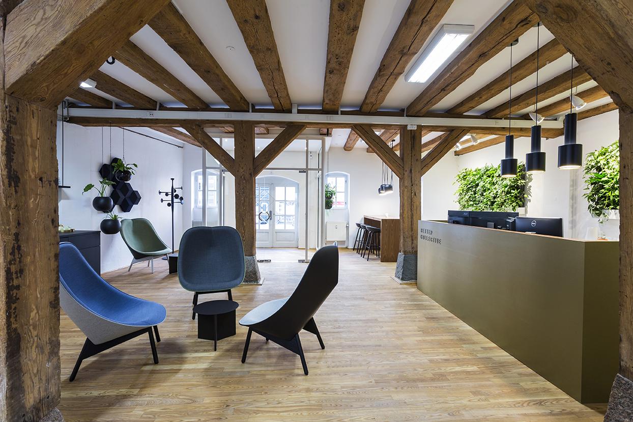 Væggene blev vide til at skabe et fint samspil med farverne og undgå de alt for stærke kontraster. Kontraster kan til tider, hvor man skal koncentrere sig, genere øjet, hvorfor de med fordel kan holdes ude af mødelokalet.