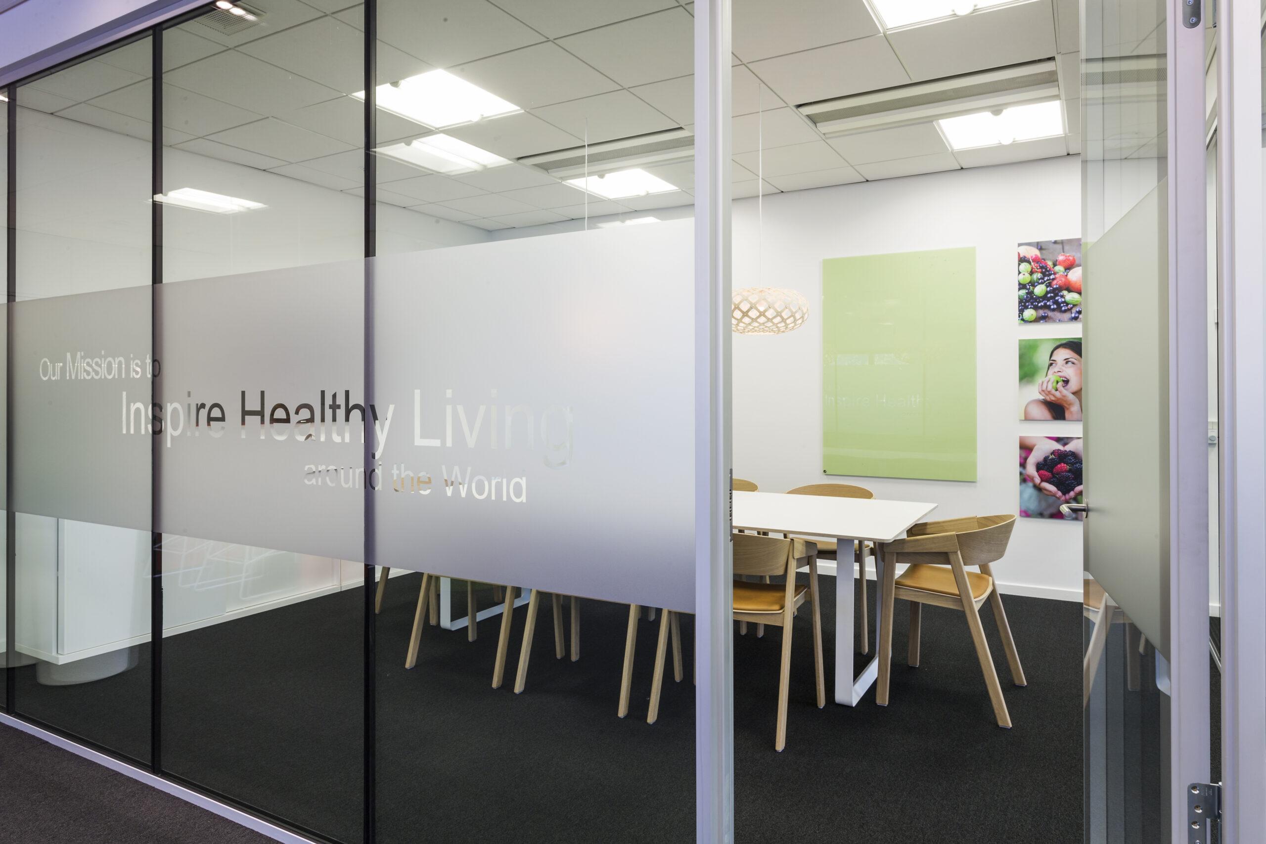 Ovenstående eksempel er fra en kunde jeg for nyligt arbejde for. Her var min opgave, at redesigne deres mødelokaler, så de fremstod professionelle, når de fik kunder på besøg. At indrette kontorer, kræver at man sætter sig ind i firmaets principper, således at man kan skabe et design, som går i et med deres udtryk. Healthy Living, som jeg her arbejde for, havde naturligvis en stil, som lagde vægt på mental og fysisk sundhed. Derfor valgte jeg et design med blide, rolige og lyse farver, til at underbygge deres passion. Lyset skulle være naturligt, hvorfor det både blev oplyst af blide loftlamper.