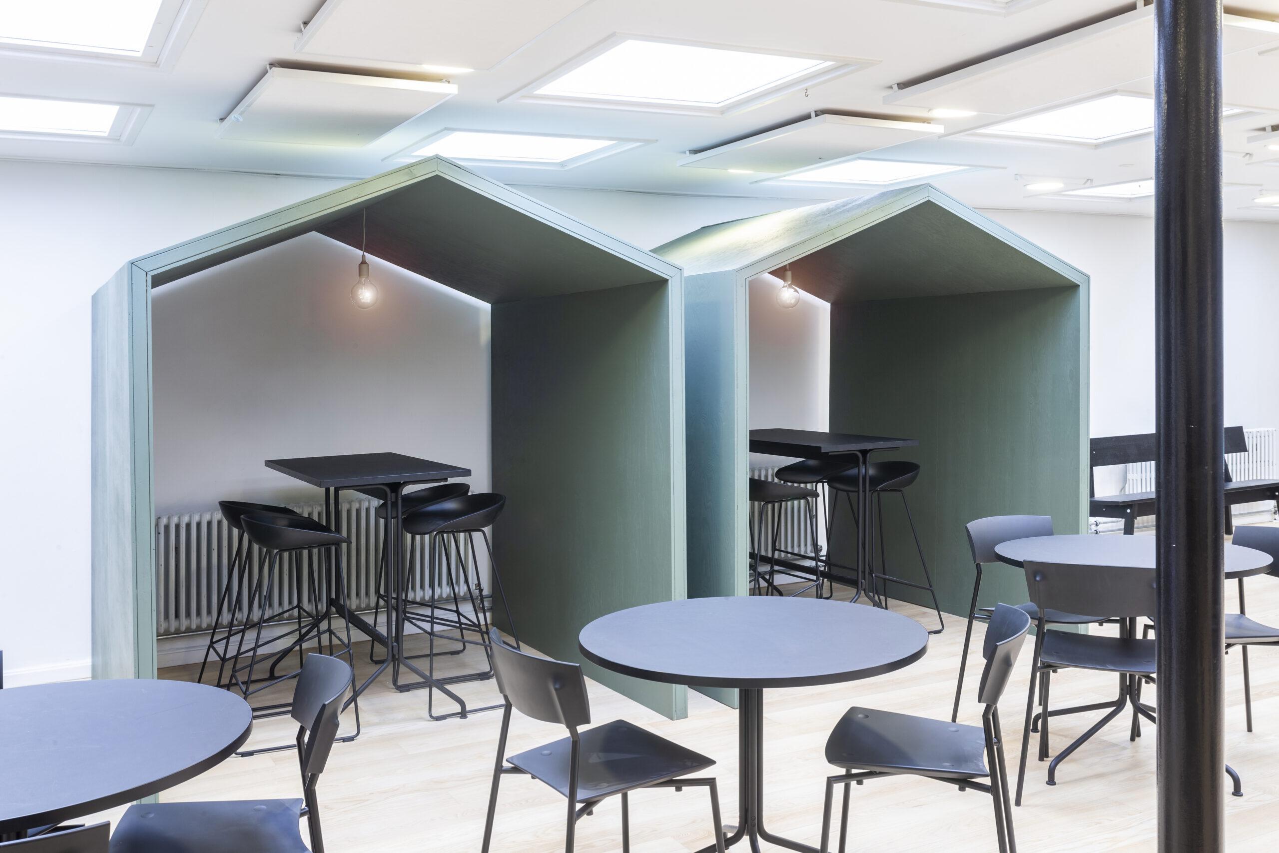 Gulvene blev tæppebeklædt, for at dæmpe lydende i rummet. Ligeledes tager loftpladerne en del af støjen. Støj er ofte en af de helt store gener, på et kontor og er noget af det vigtigste man får under kontrol. Til sidst men ikke mindst blev mødelokalets, glasfacader overtrukket med klæbefolie, så personalemøderne ikke bliver distraheret af forbipasserende.