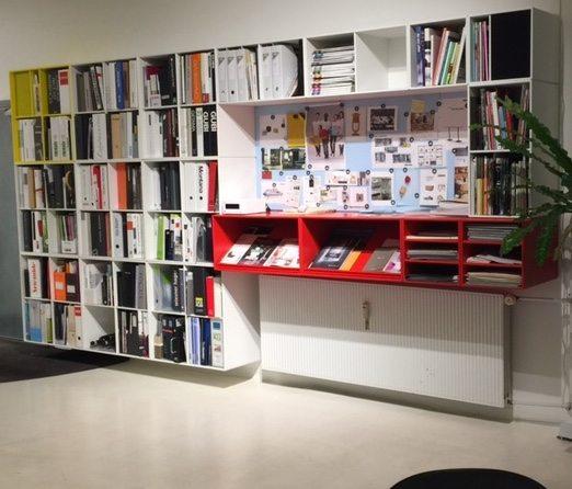 Jeg var forleden dag inviteret på besøg hos Hassberg i Valby. Her fangede mit øje et meget kreativt og farverigt hjørne, der virkede dragende. – For bare det, at skranken er rød gør, at farverne på tavlen og i bøgerne træder tydeligere frem, end de nok ellers ville gøre.
