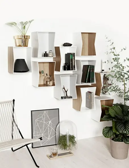 Har du for eksempel set disse firkantede FLIP hylder fra Munk designet by Hviid Damsbo? Den skifter simpelthen form alt efter hvor man ser den fra! Fra den ene side kan det ligne et hexagon og fra den anden side et timeglas. Det giver en fantastisk effekt og integrere rummet på en anderledes og sjov måde.