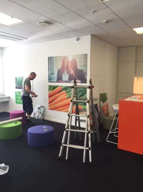 Ja, nu er det selvfølgelig ikke ham i skal tjekke ud! – Men læg mærke til, hvor meget liv der kan komme i et traditionelt kontorlandskab, ved at turde bruge den dynamik, der kan komme fra farver.
