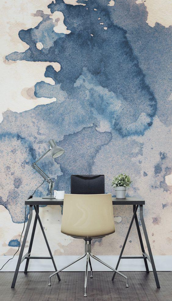 En flot akvarel sammensmeltning af blå nuancer til et kontorområde.