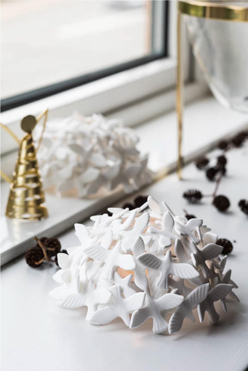 Billedet viser Kählers kollektionslinje ”Hvide jul”. Skøn julepynt, der skaber den rigtige og varme julestemning i ethvert hjem.