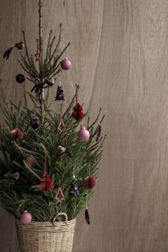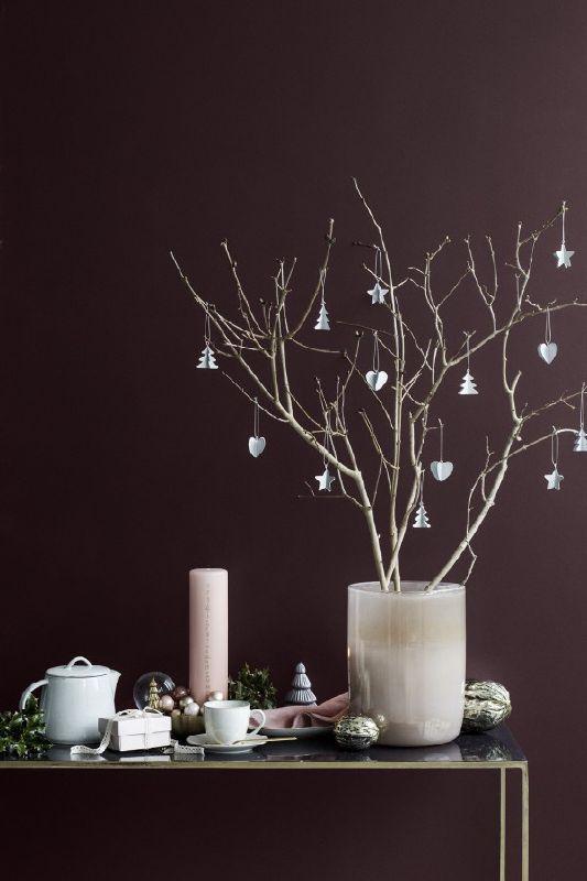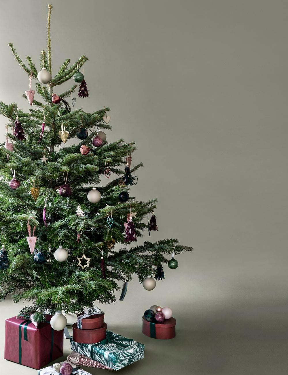 Julekuglerne i de forskelige nuancer – blomme, figen eller aubergine vil give træet et nyt og helt anderledes moderne udtryk.