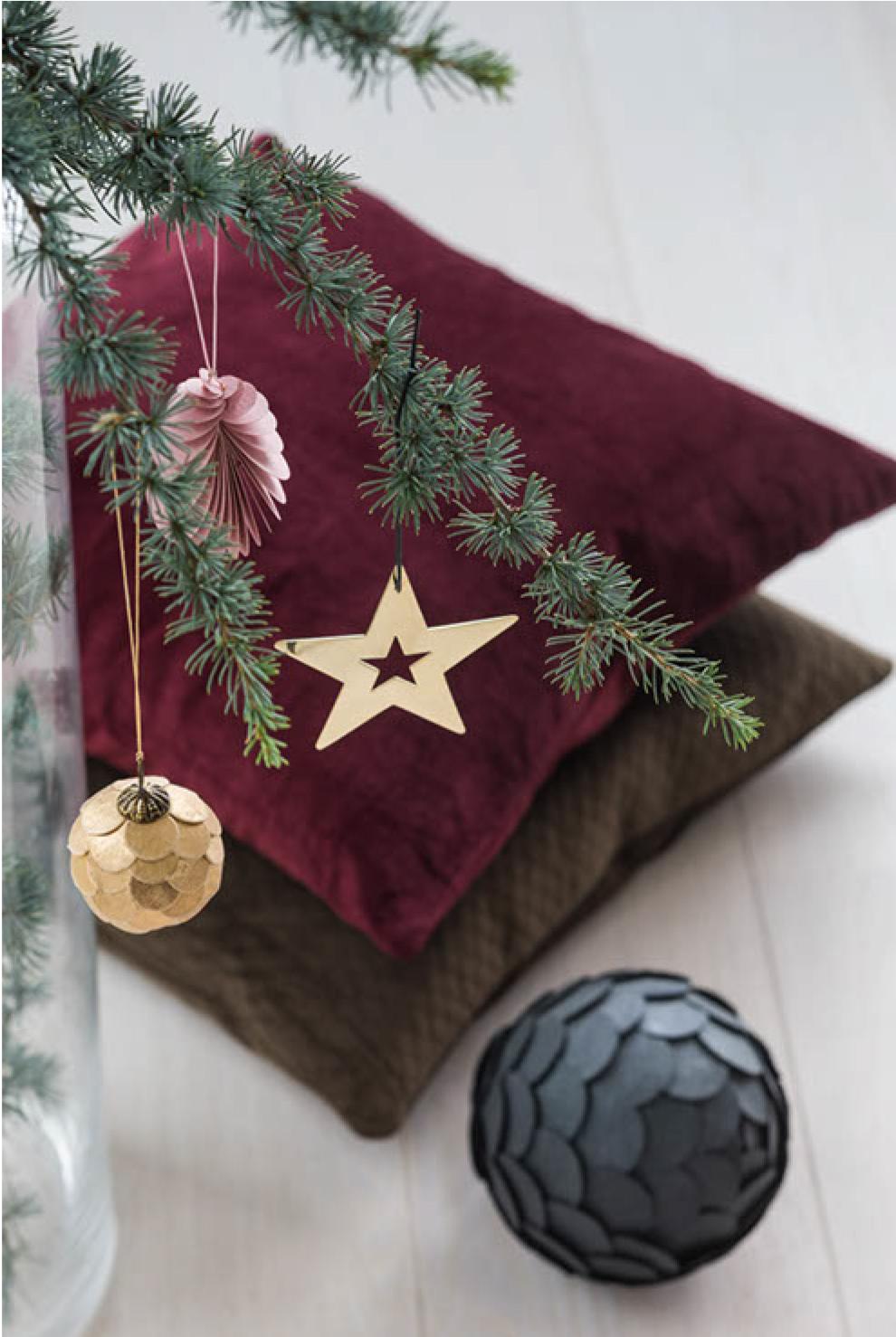 Uanset om det er på det store træ i midten af stuen, det lille træ i vasen på gulvet eller på juletræsfoden vil pynten i de varme efterårsfarver være et frisk – og ikke mindst nyt pust – og smukt supplement til julestemningen. Kugler, små eller store, engle, hjerter, uroer eller hvad fantasien nu rækker til.