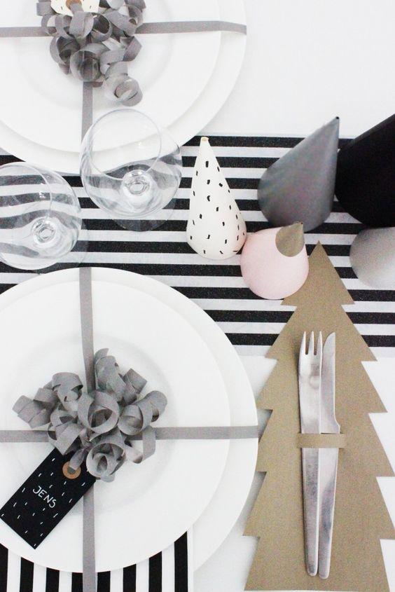 F.eks. kan du bruge en kageform som en festlig og anderledes servietring. Du kan også lave spiselige bordkort ud af julesmåkager og glasur. På den måde får dine gæster sig en spiselig overraskelse, når de tager plads ved julebordet. Hvis du ikke har fået købt en julebuket, kan du nemt og hurtigt lave en fin erstatning ved at gå på jagt i naturen efter en fin gren. Grenen kan du sætte i en vase på bordet og pynte den med julekugler i flotte farver. Hvis du ønsker at skabe et sjovt udtryk på julebordet, kan du også pakke alle tallerkener ind i gavebånd.