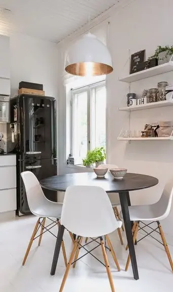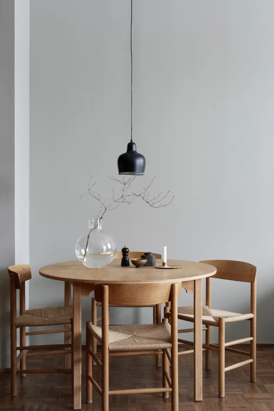 Når du indretter med et rundt spisebord, er det vigtigt at skabe en dynamisk indretning. Derfor bør du tænke over, hvordan du kombinerer dit runde spisebord med den øvrige indretning. F.eks. skal du overveje, hvilke spisebordsstole du skal bruge rundt om bordet. Er spisebordet stort og har et rustikt udtryk, kan det som regel være en fordel at anvende nogle enkle spisebordsstole, som har et let udtryk. På den måde undgår du, at indretningen bliver tung og mokket, og samtidig får det flotte spisebord lov til at træde frem som rummets centrale møbel. Derudover er det også vigtigt at sørge for, at der er luft omkring spisebordet og stolene for at gøre indretningen mere indbydende for dig og dine gæster. For at understøtte bordets udtryk i rummet kan du også vælge nogle spisebordsstole, der ligesom bordet har bløde kanter. På den måde skaber du nemlig en råd tråd i indretningen. Det samme gælder med valget af spisebordslamper. Vælger du en lampe med runde former, giver det et flot sammenhængende udtryk i rummet. Du kan dog også vælge at finde en spisebordslampe i en mere kantet form, hvis du ønsker at skabe kontrast til bordets og stolenes bløde form. Det kan være med til at give rummet et moderne twist.