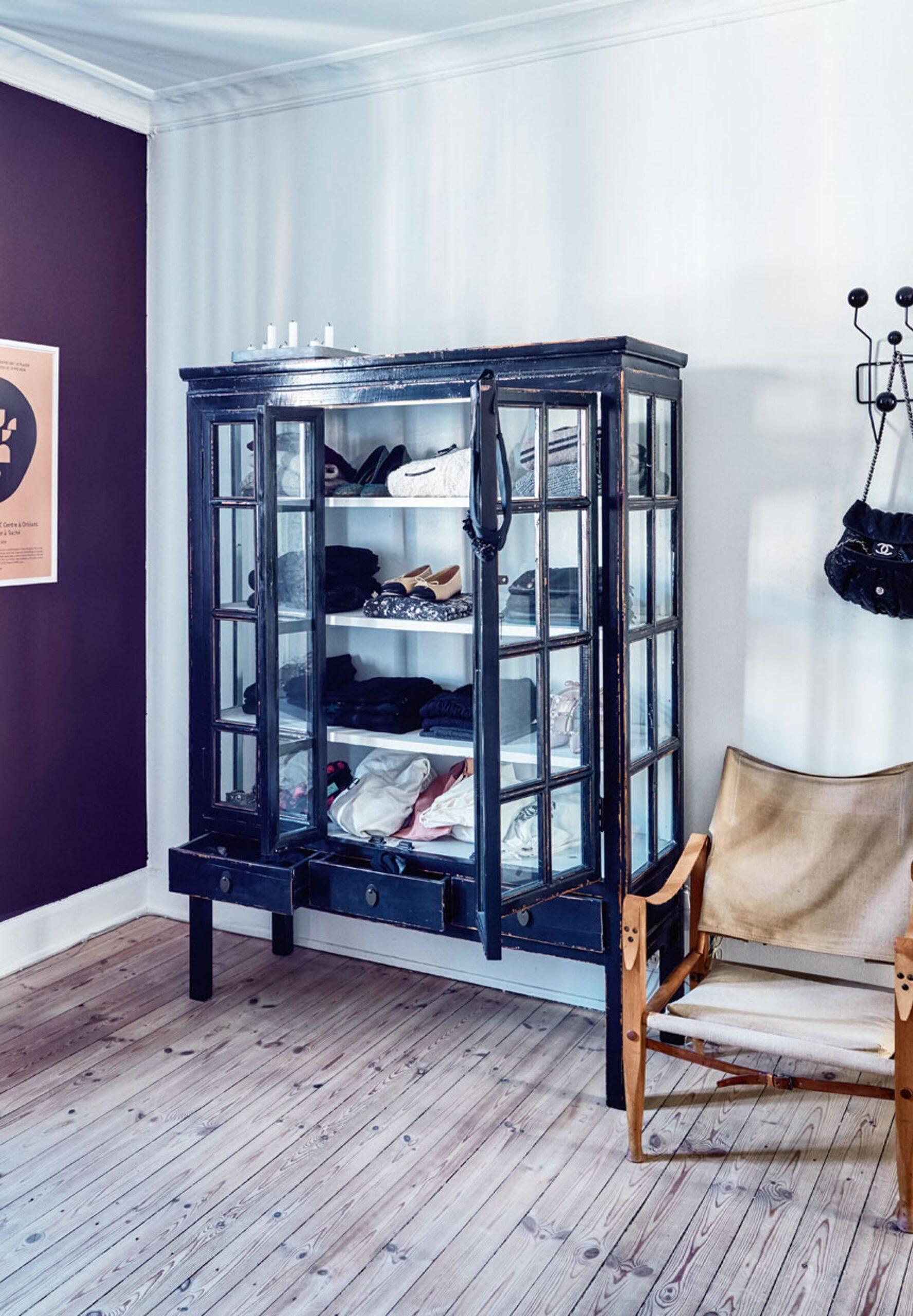 Den første måde, hvorpå du kan bruge dit vitrineskab på en alternativ måde i din indretning er ved at anvende vitrineskabet som dit nye gaderobeskab. Du kan enten bruge et stort vitrineskab eller sammensætte flere små skabe, for på den måde at skabe det perfekte gaderobeskab med masser af plads til dit tøj. Fordelen ved at bruge vitrineskabet som gaderobeskab er, at værelset opnår et fint og personligt udtryk, når tøjet er synligt, og kan ses gennem de flotte glaslåger i skabet.