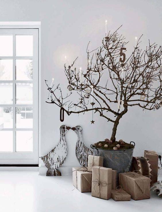 Den første løsning du kan benytte dig af er at hænge juletræet op i stedet for at stille det på gulvet. De fleste familier har nok erfaret, hvor besværligt det kan være at få juletræet til at stå lige. Hvis du hænger juletræet i loftet, er du sikret et flot resultat, og du slipper for at ligge på gulvet og rode med en usamarbejdsvillig juletræsfod. Derudover bliver der også mere plads til gaver under træet med denne løsning. Hvis du endnu ikke har fået købt et juletræ, eller bare ikke bryder dig om grantræer, fordi de har en tendens til at svine når de taber deres nåle, kan du også bruge en anden træsort end gran som juletræ og pynte dette med din julepynt. Denne løsning er perfekt, hvis du ønsker at skabe et minimalistisk og nordisk udtryk i hjemmet og samtidig sprede en hyggelig julestemning.