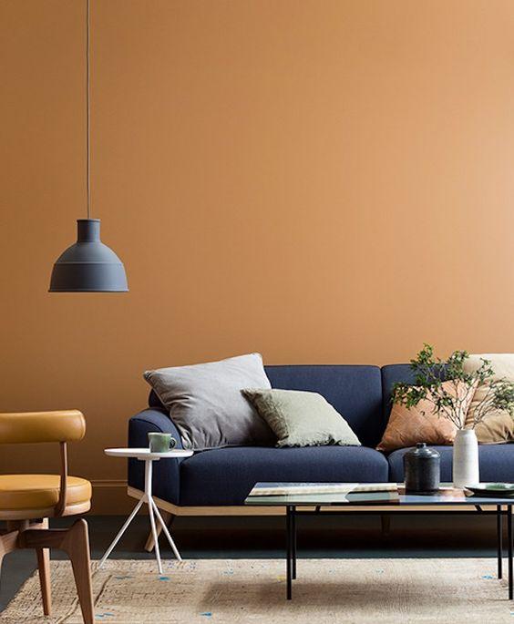 De seneste år har der været godt smæk på farverne, og vi har set de stærke farver dominere. Det er jeg stadig tilhænger af, men jeg mener også, at det er vigtigt at skabe ro i hverdagen, og der er en farve som camel god at implementere. Den står rigtig fint alene – og specielt oppe mod det hvide, hvor det vil være farven, der dominerer. Den kan dog også være god til at omfavne og skabe ramme for andre farver. Det kunne f.eks. være på ovenstående billede, hvor den skaber en god harmoni til den dybe, blå sofa, som kommer i front og skaber mere fokus.