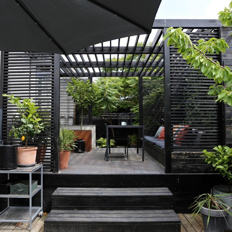 Idéen med at skabe en smal pergola langs huset er jeg også ret vild med. Det giver nogle fine muligheder for at sætte nogle få liggestole eller sætte en grill op, så der kan grilles hele året rundt uden frygt for regn og blæst.