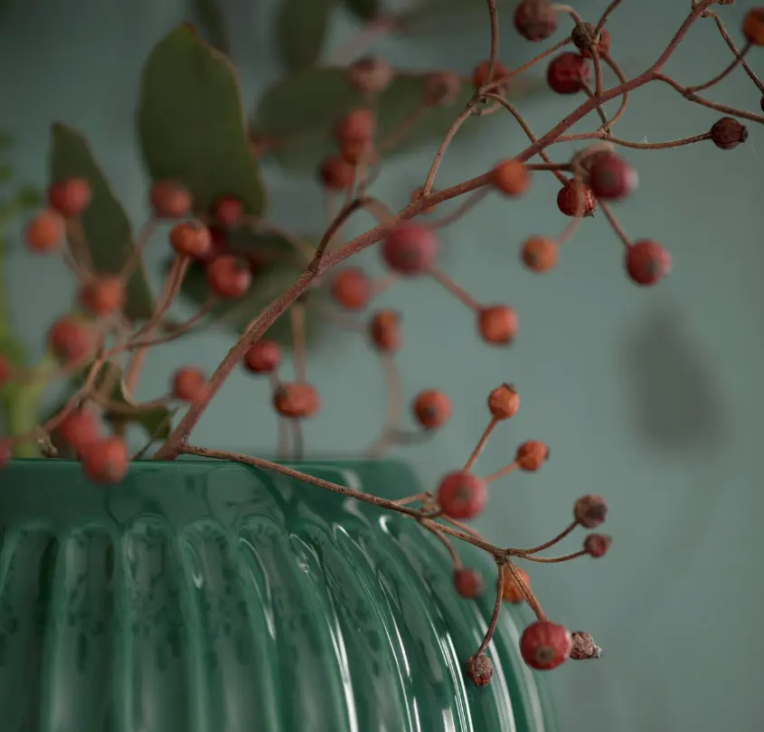 Grønne farver er utrolig smukke og fås i mange forskellige nuancer som kan bruges året rundt. De grønne farvenuancer er super moderne i den danske boligindretning for tiden, fordi de pynter hjemmet og skaber liv og spil i indretningen på en elegant måde. Ønsker du også at bruge de grønne farver i din indretning om efteråret er det især de mørkegrønne farver der skaber en varm og hyggelig atmosfære i hjemmet. Derudover får de mørkegrønne nuancer også et smukt udtryk, i kombination med andre efterårsfarver.