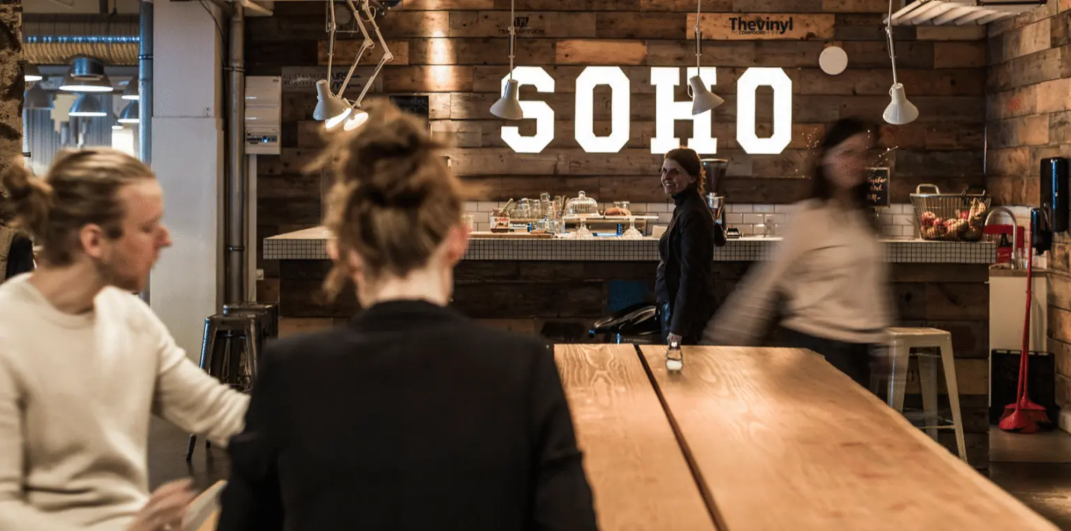 Det er vitterlig kun fantasien og kreativiteten, der sætter grænserne. Det har de forstået hos SOHO i Kødbyen, som er et kontorhotel. Her er en tæt forbindelse mellem arbejde og oplevelse. Idéen er at komme så langt væk fra det traditionelle kontorhotel som muligt, og det må man sige er lykkedes rigtig flot. Indretning skaber værdi for os, og derfor skal der være plads til forskellige dele. Et sted hvor vi kan tage en pause og koble af, et sted vi kan være kreative, og et sted hvor vi kan være fuldt koncentrerede.