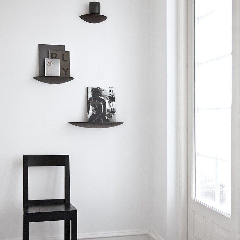 Fra Menu er en smuk hylde som tager udgangspunkt i organiske former. Den minder om en svamp der vokser på et træ. Du kan bruge hylden ved din seng eller feks sætte nogle stykker i en lille gruppe på væggen i stuen. Den kan osse bruges i køkkenet som en flot og spændende krydderihylde.