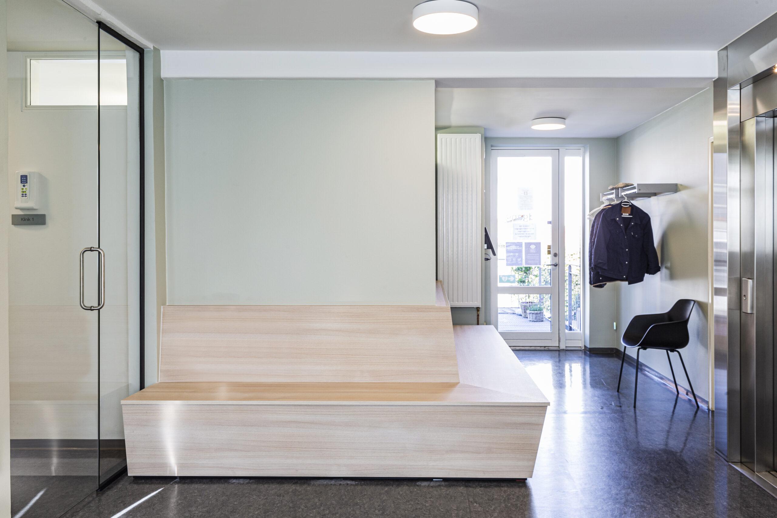 Den gamle entré var egentlig funktionel, men trængte alligevel til en optimering samt et mere moderne og indbydende look. Stumtjeneren er blevet udskiftet, således at patienter ikke skal grave deres overtøj frem fra under fremmede menneskers frakker.