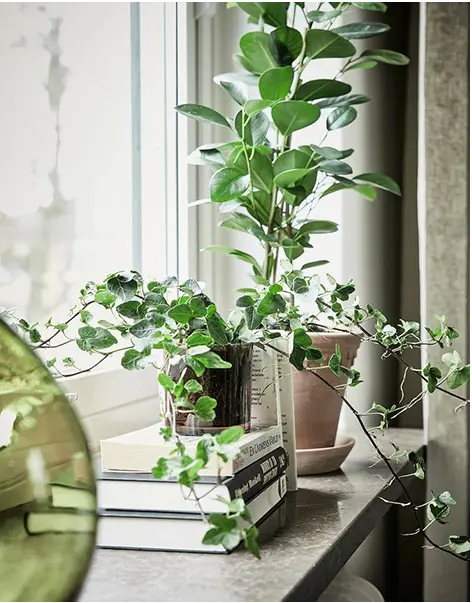- For at opnå forskellige højder i din vindueskarm, kan du passende stable magasiner eller bøger op som podier, der kan pynte. Du kan også bruge en høj plante eller en lang vase, som også giver højde. Det ser fedt ud!