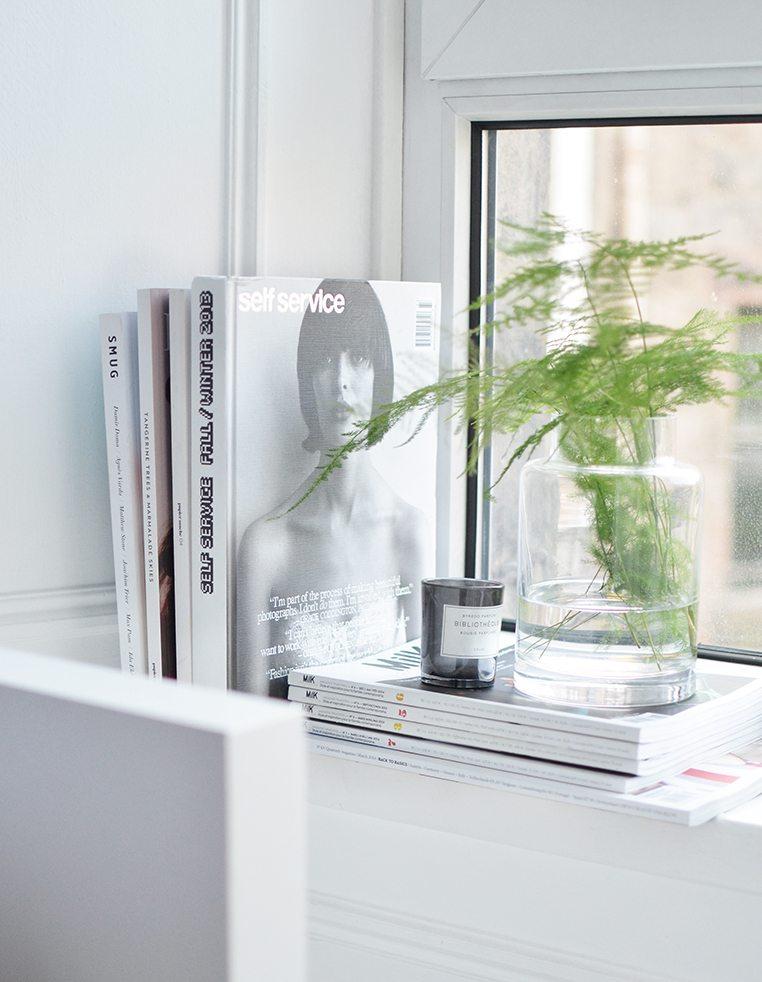 - For at opnå forskellige højder i din vindueskarm, kan du passende stable magasiner eller bøger op som podier, der kan pynte. Du kan også bruge en høj plante eller en lang vase, som også giver højde. Det ser fedt ud!