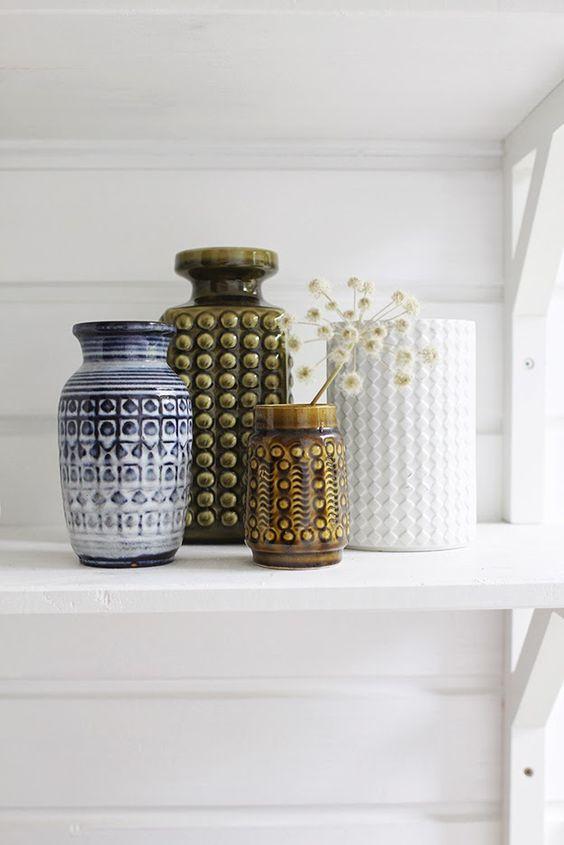 Samle dine vaser et samlet sted og mix de nye med de gamle. Det er både dekorativt, og bliver langt mere personligt at se på. De gamle vaser har ofte mere karakter og kant end nyere i glas.