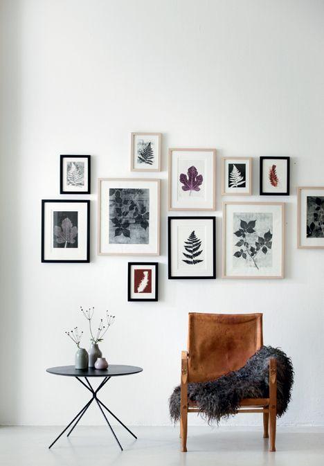 Men det behøver ikke kun at være tegninger, det kan også være postkort, forsider fra blade eller gamle fotografier, som du synes er utrolig flotte. Eller blade fra skoven, der lige nu har de skønneste farver! – Lad bladene tørre og ram dem derefter ind.