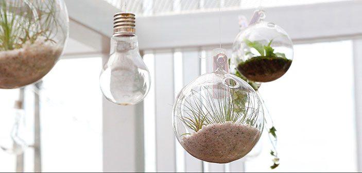 De små runde glaskugler er så fine at have hængende, hvor man kan gemme enten små planter eller ting der betyder noget for dig. Glaskuglerne kan man få efterhånden mange steder, bl.a. i Kreashop. Hæng dem op i forskellige højder og gør dem til dit eget lille univers.