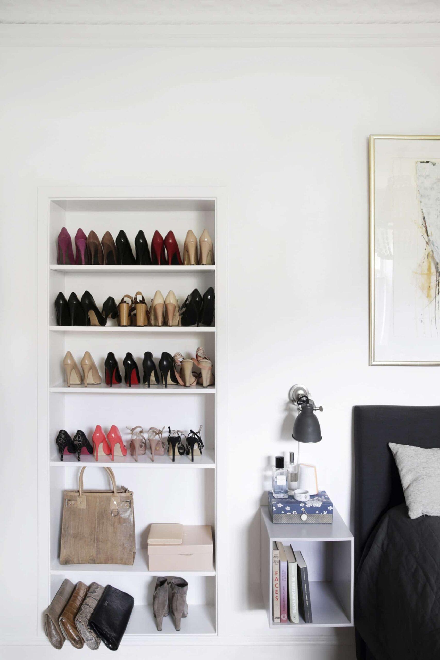 Den sidste løsning du kan benytte dig af for at optimere indretningen i dine indhak er ved at bruge den ekstra plads som gaderobeopbevaring. I entreen kan du f.eks. bruge indhakket i væggen som opbevaringsplads til overtøj, støvler og hatte, mens du i soveværelset eller i dit walk-in-closet kan bruge den ekstra plads til opbevaring af sko og tasker. Ved at placere din gaderobe inde i et indhak får rummet et enkelt udtryk, og du undgår at spilde gulvplads på store klædeskabe og reoler.