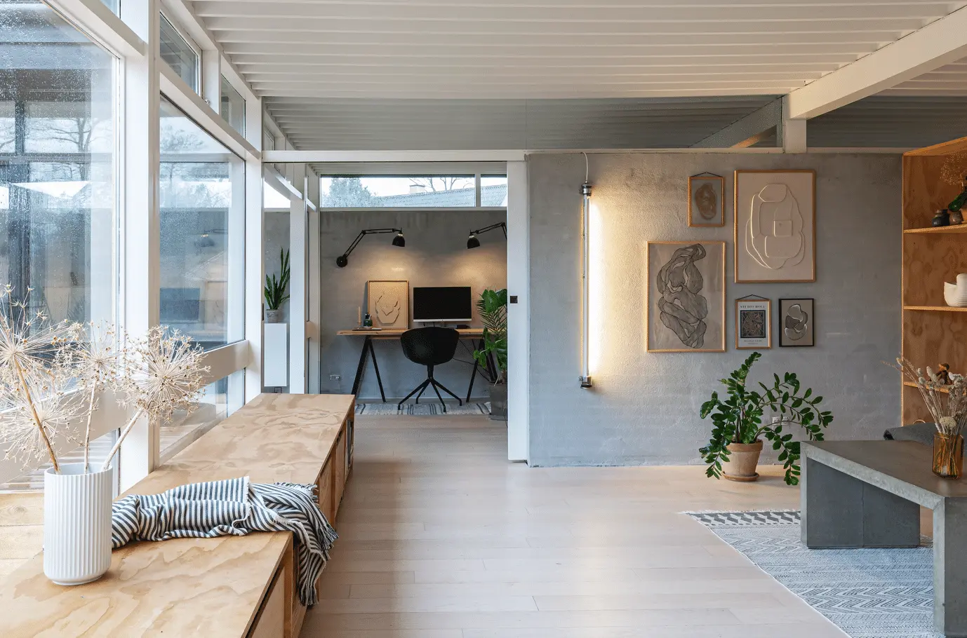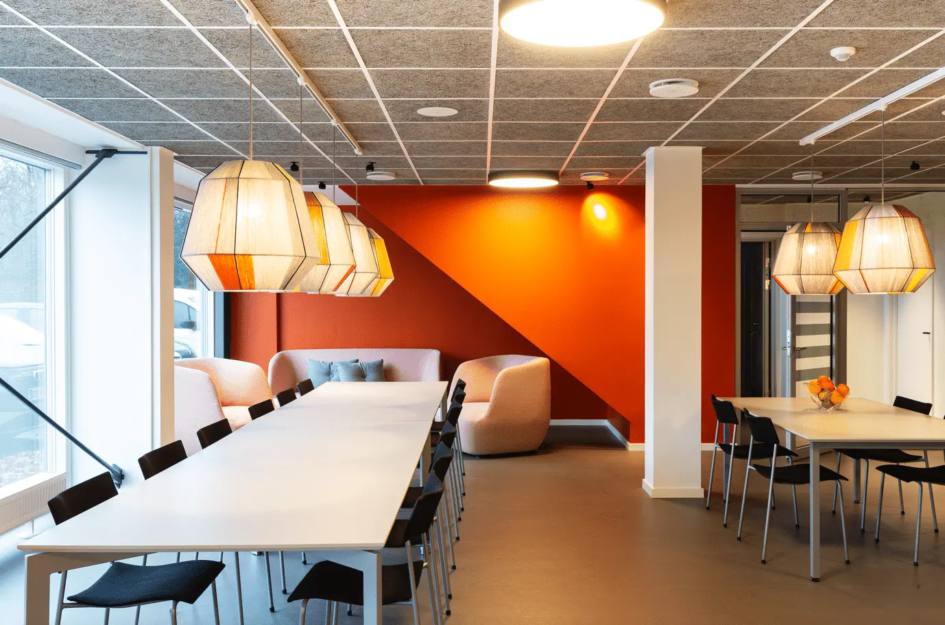 Det samme gælder på arbejdspladsen. Jeg indretter rigtige mange lounges, kantiner og mødelokaler, hvor vi trækker det hyggelige vi kender fra vores bolig med ind.
