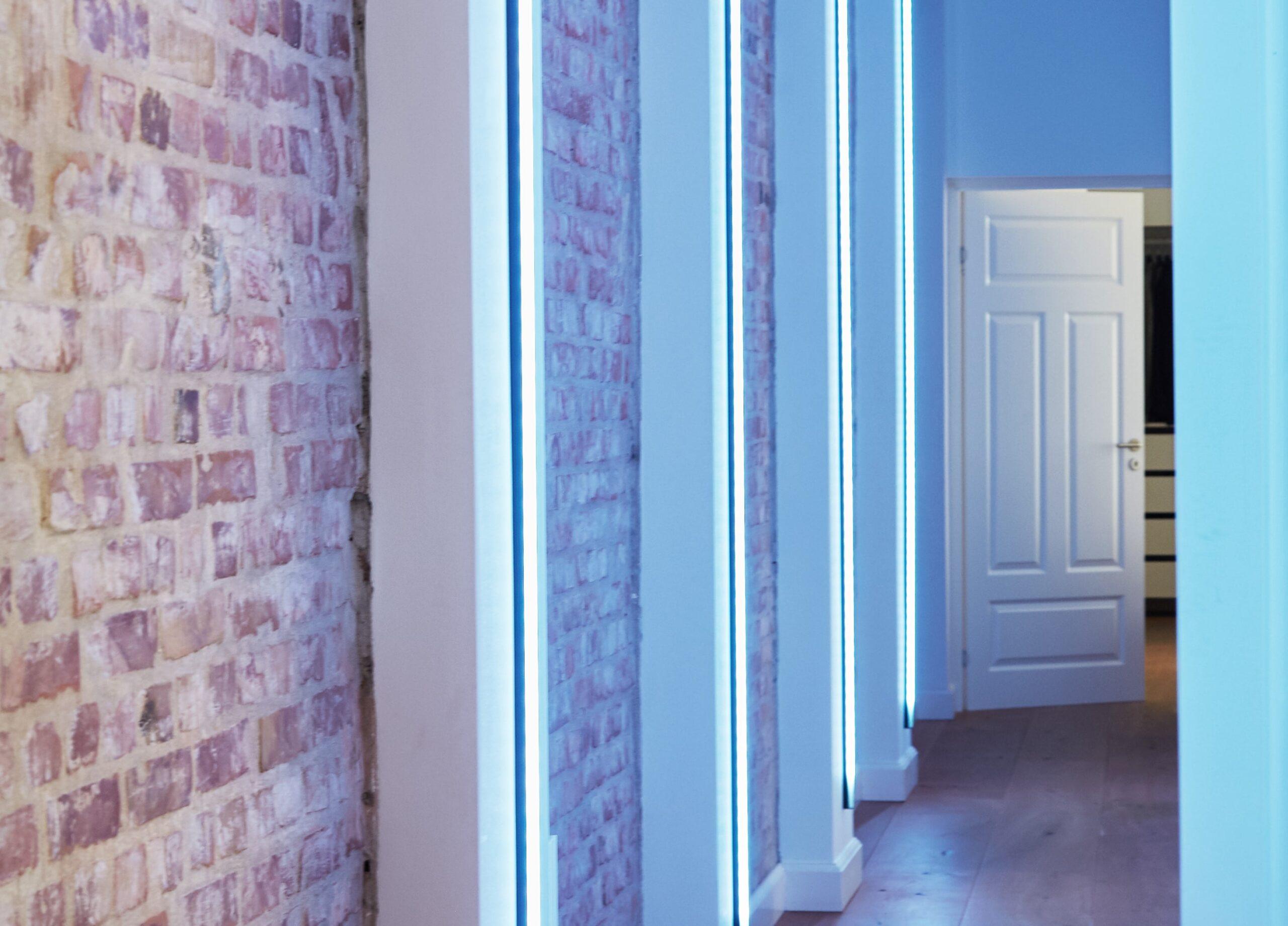 LED-skinnerne fungerer som en slags dekoration i rummet, og giver en helt anderledes stemning end traditionelle loftslamper. Idéen minder lidt om forskellige moderne kunstværker, hvor der også er blevet eksperimenteret med belysning. Her er det bare på et niveau, der passer ind i private hjem.