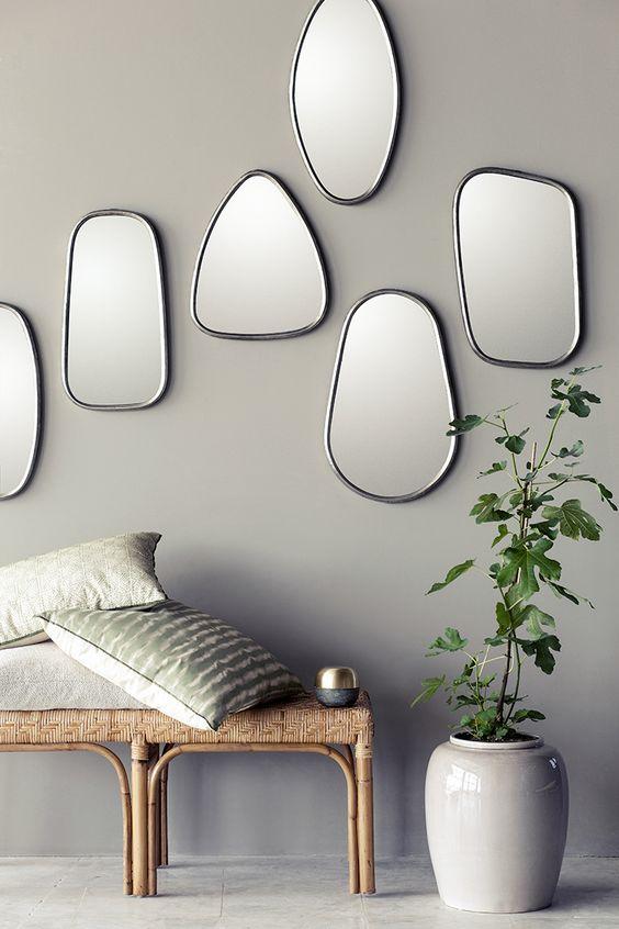 Men ikke nok med at spejle kan få rum til at virke større og lysere, kan spejle også bruges som pynt på væggen. Man kan bruge spejle på væggen i stedet for billeder og maleriet. Prøv fx at samle en masse forskellige spejle og hæng dem samlet på en væg i stuen bag sofaen. Det skaber en sjov dynamik og et anderledes look i boligen. En anden funktion ved spejle, er at de kan skabe ekstra liv i boligen. Er du glad for levende lys, kan du overveje at bruge et spejl som baggrund, så det giver en ekstra hyggelig effekt og får det levende lys til at lyse endnu mere op.