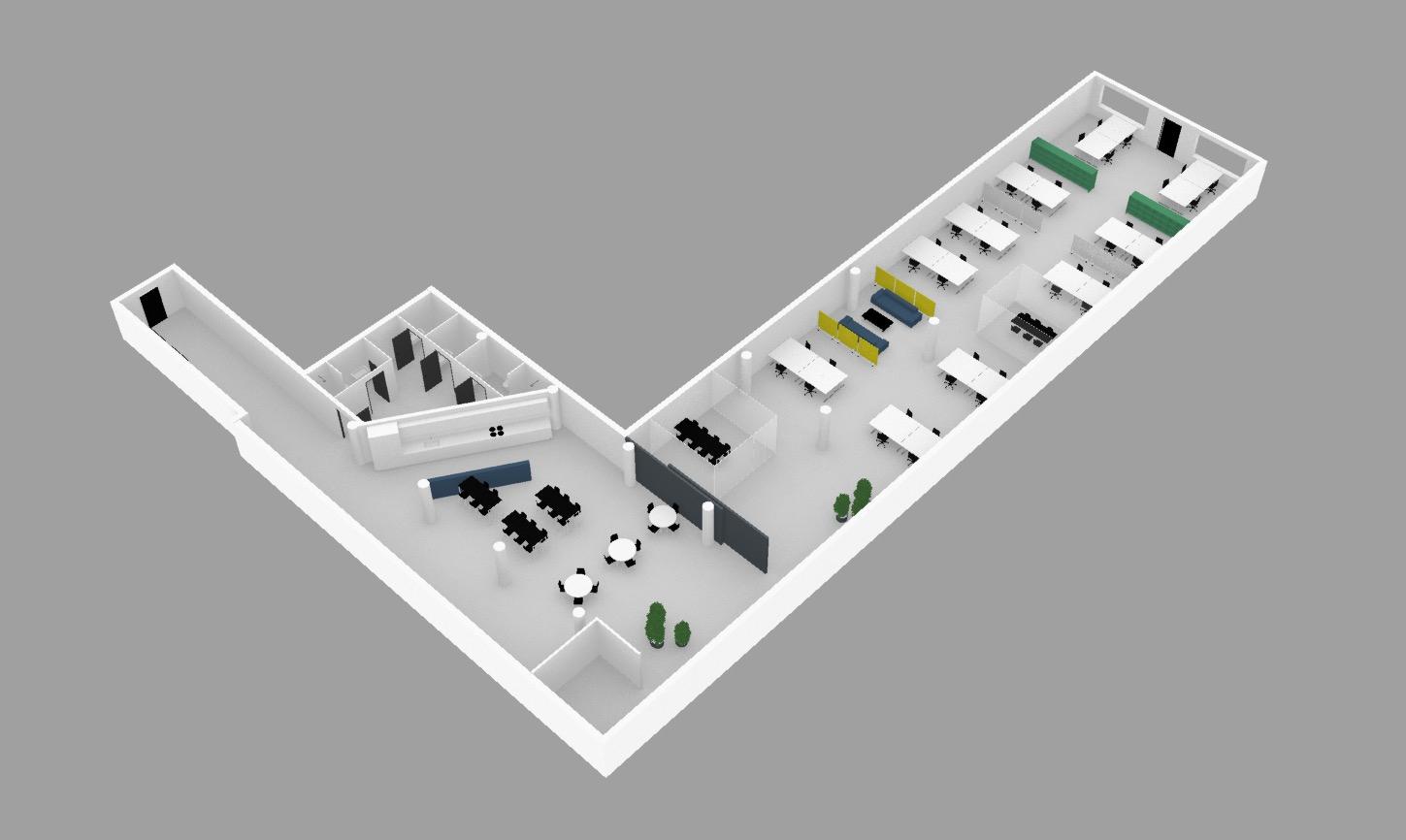 … Og her har vi så tænkt os – at der skal være et kontor med plads til 40 mand!