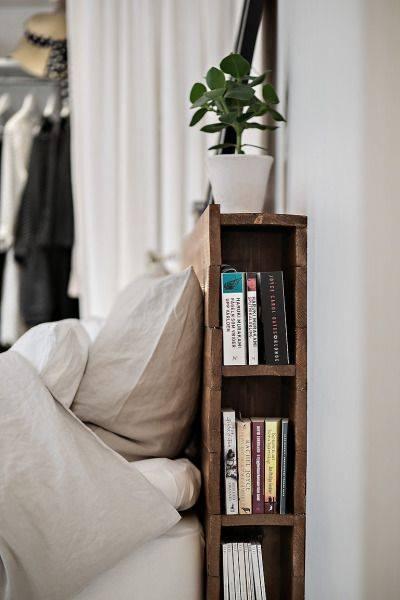 I små værelser er det ikke altid, at der er plads til et natbord, hvor du kan lægge din bog eller oplade din telefon på i nattens løb. Derfor kan du med fordel anskaffe dig en sengegavl, der både pynter i værelset og skaber lidt ekstra opbevaringsplads. Sengegavlen på billedet er udformet i mørkt træ. I siden er der lavet små hylder, og foroven er der gjort plads til en lille plante eller andet dekoration. En pæn sengegavl, der giver lidt ekstra opbevaringsplads i soveværelset er mindst ligeså anvendelig og pynter ligeså meget i et stort soveværelse som i et lille.