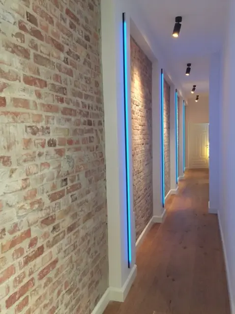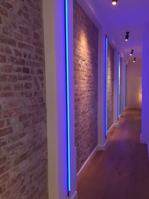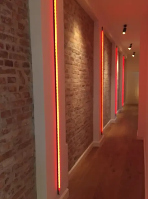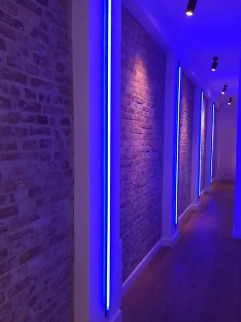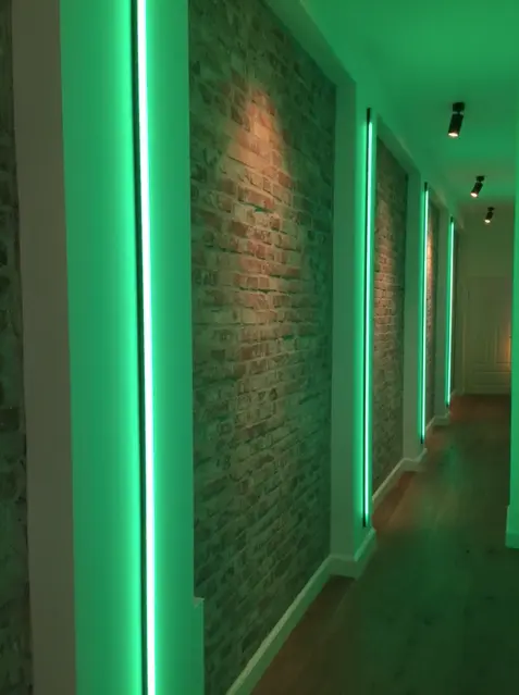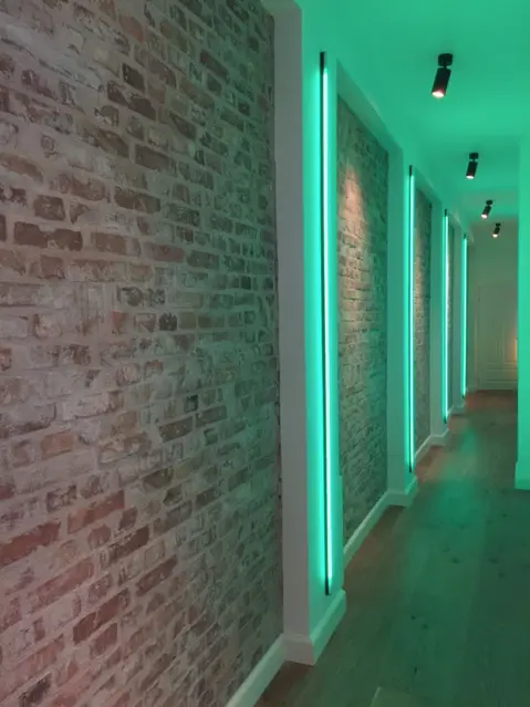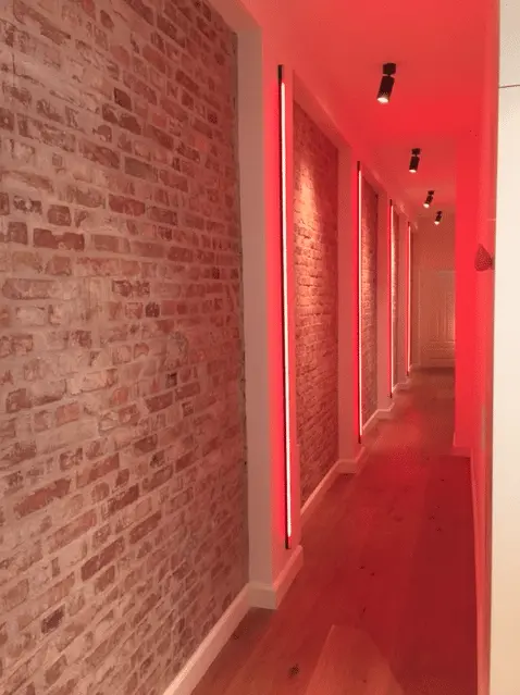 Alt efter humøret kan man selv vælge hvilken farve gangen skal være oplyst i. Hver farve giver sit helt eget unikke udtryk og stemning der aldrig gør, at gangen bliver kedelig igen. Nu er der kommet smæk på, og rummet er blevet langt mere interessant.