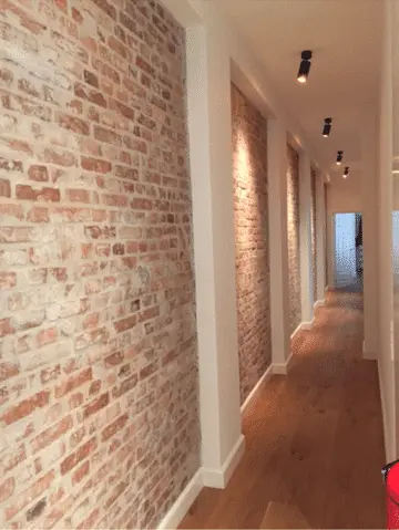 Med en smal og lang gang er det begrænset, hvad man kan med indretningen. Men noget man i hvert fald kan arbejde med er fede effekter der gør, at gangen ikke behøver at være et led mellem to rum, men nu også kan afspejle personlighed og kant!