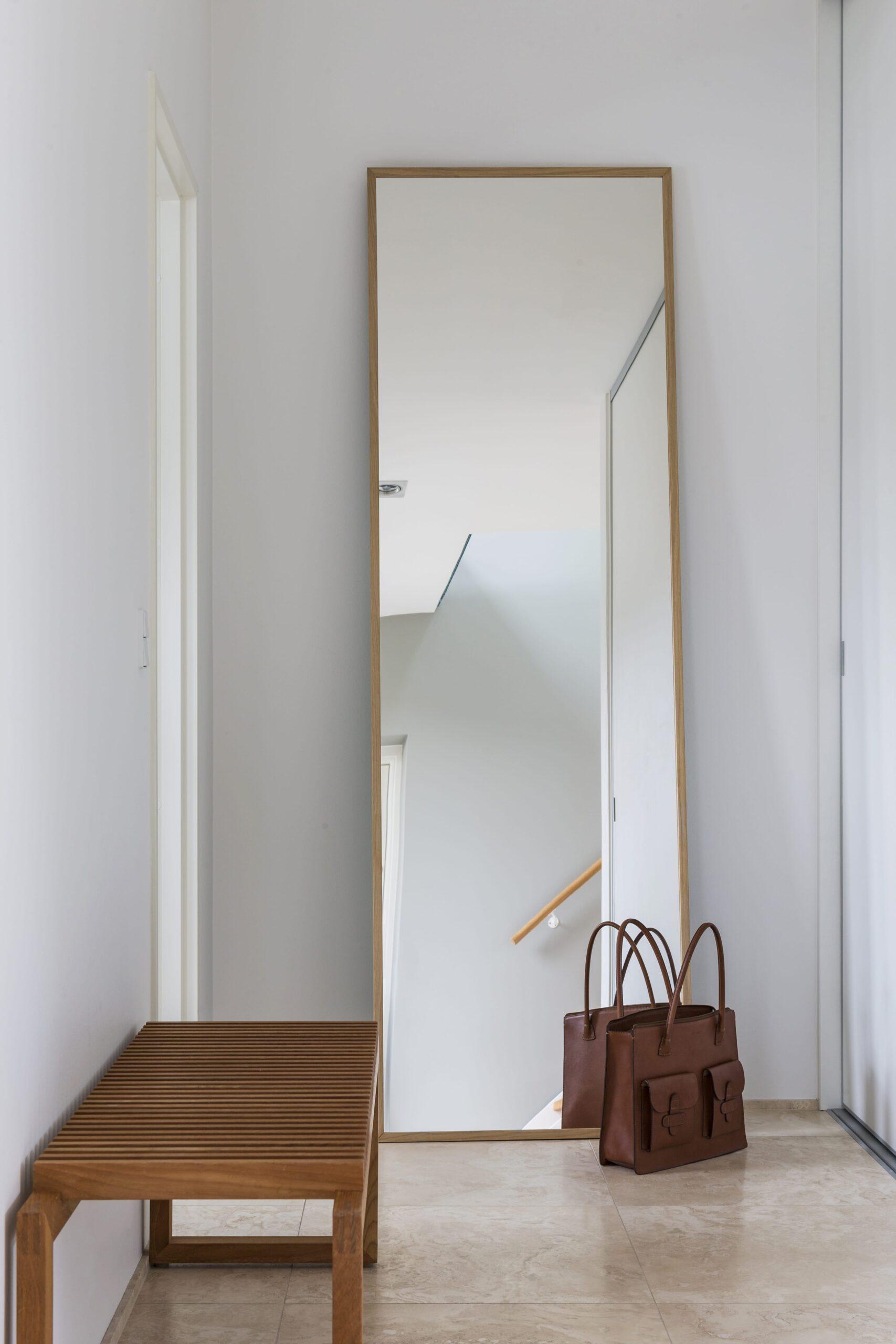Når en kunde beder mig om, at indrette deres hjem mere struktureret og enkelt, sporer jeg mig ofte ind på, hvad rummets behov er. I tilfældet på billedet, har jeg taget udgangspunkt i en entré. Inden jeg fyldte rummet op med genstande, spurgte jeg mig selv – “hvad er det essentielle, der gør en entré til en entré”. Der er sikkert ikke én entre i verden, der ser ens ud, men de har alle fællestræk der gør dem til entréer. Jeg valgte at gøre entreen på billedet så simpel, som overhovedet muligt. Dette blev muliggjort med et special designet spejl og en bænk fra Skagerak. Disse to genstande har nogle af de vigtigste funktioner som entreen indeholder og ydermere fungerer deres design sublimt sammen.