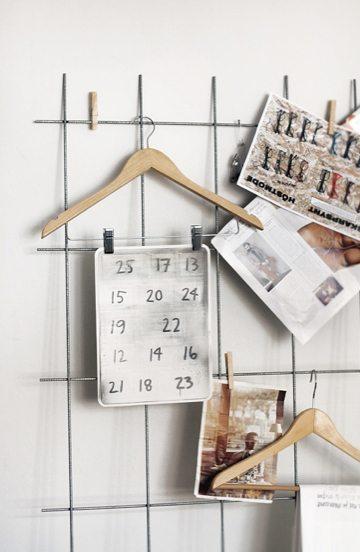 Tænk ud af boksen og brug fx klips du sætter i væggen med søm. Så kan du hænge invitationer et sted og huskesedler et andet sted. Det giver et rigtig godt overblik.